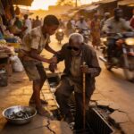 The old man fell so quietly that the market barely noticed. One moment he was tapping his walking stick along…
