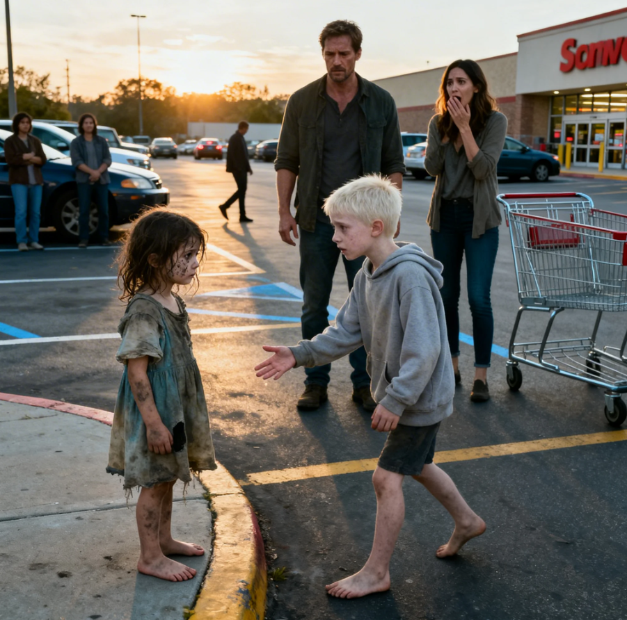 The first thing anyone noticed about the girl was her silence. She stood near the edge of the parking lot, small and still, like she had learned long ago not to take up too much space in the world. Her dress was faded, once pink, maybe, now the color of dust and time. Her bare feet pressed against the cold pavement, but she didn’t flinch. She just watched.