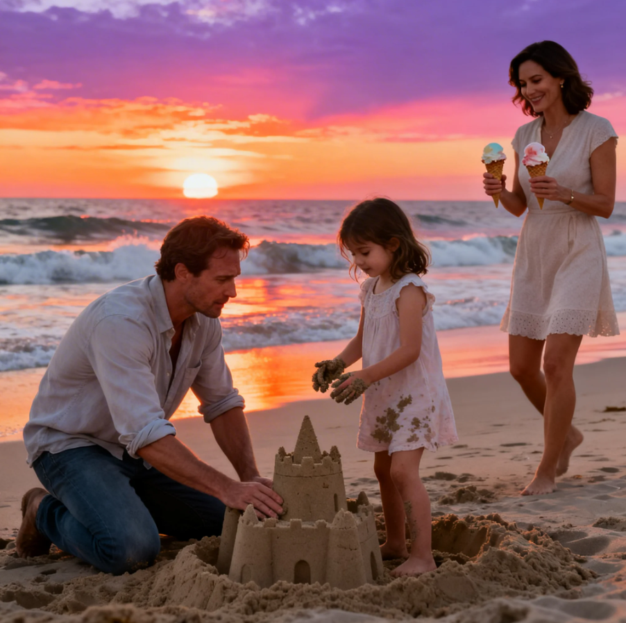 I made a tower.” Emma called out proudly pointing to a lumpy addition to her sand castle. “That’s amazing, sweetheart,” Mark replied, his smile genuine despite his exhaustion. The weekend beach trip had been a spontaneous decision. Emma had been begging, and he’d been working too many late nights. The guilt of being both mother and father sometimes overwhelmed him.