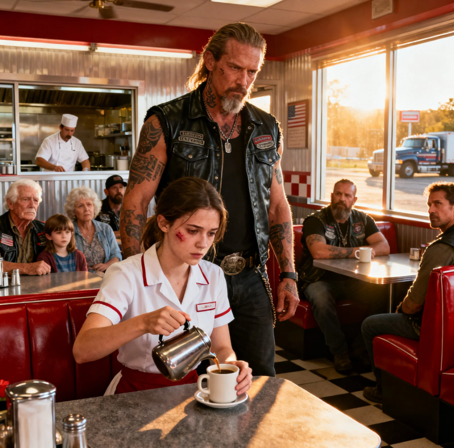 Biker Gang Leader Noticed the Waitress’s Bruises — What He Did Next Shocked the Whole Town !
