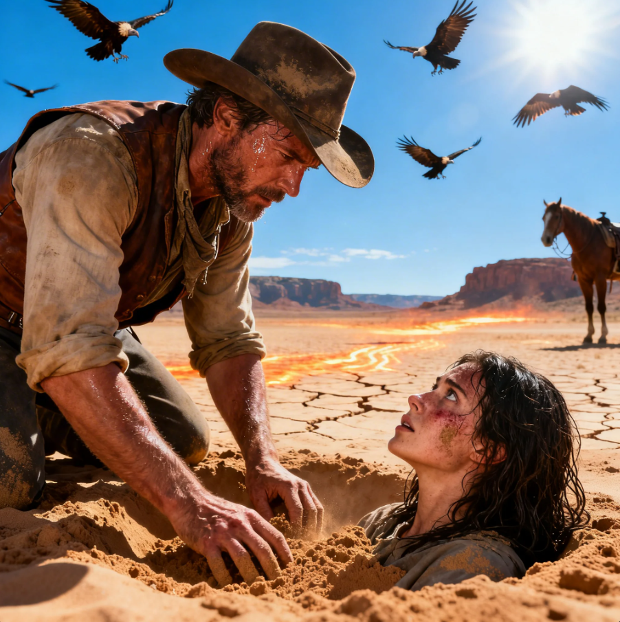 Cowboy Found a Woman Buried to Her Neck in Desert Sand, Her Last Words Made Him Stay Forever !