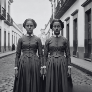 Todo comenzó con la llegada de dos hermanas a la ciudad. Nadie sabía exactamente de dónde venían, aunque algunos aseguraban haberlas visto descender de un barco procedente de España. Lo que sí era innegable era su belleza perturbadora. Ambas lucían una piel pálida como la porcelana, ojos oscuros que parecían penetrar el alma y una elegancia que contrastaba con la simplicidad de la época.