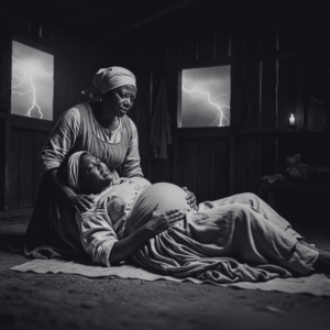 Los campos se extendían infinitos, cubiertos por la oscuridad. que solo era interrumpida por los relámpagos distantes que iluminaban brevemente las hileras de caña, como si el propio cielo quisiera presenciar lo que estaba a punto de ocurrir. En la chosa más alejada de la hacienda, aquella que quedaba más allá de los galpones de almacenamiento y los corrales, donde nadie tenía razón para ir después del atardecer, Magdalena se retorcía en el suelo de tierra apisonada.