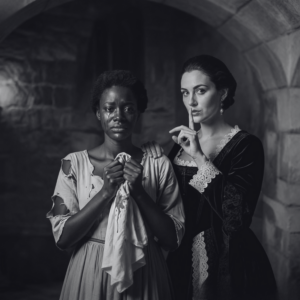 Pero antes de que pudiera procesar completamente lo que estaba viendo, la puerta de la habitación se abrió bruscamente y doña Catalina entró, seguida por don Rodrigo y por el sacerdote de la hacienda, padre Tomás. Doña Catalina miró la escena durante un momento que pareció eterno. Sus ojos se movieron de Magdalena a lo que yacía entre sus piernas y luego a Soledad.