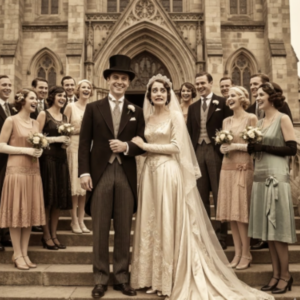 La imagen irradiaba Característica de optimismo y celebración. los locos años 20, cuando la sociedad estadounidense estaba abrazando con entusiasmo la prosperidad y modernidad después de las dificultades de la guerra. La fotografía mostraba una gran boda. dispuestos sobre las escaleras de Santiago Cathe, una de las más fashion de Chicago iglesias.