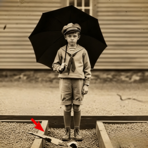 La cara del niño, cuando se agranda, ya no parecía tranquilo. Sus ojos no estaban enfocados en la cámara. Estaban ligeramente inclinados hacia abajo, como si estuviera mirando algo Debajo del paraguas, algo cercano lo suficiente como para que no se atreviera a moverse. Su leve sonrisa, antes encantadora, ahora Parecía tenso, congelado por algo más que el limitaciones de la fotografía antigua.
