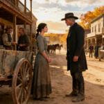 The autumn wind carried dust and judgment through Bent Creek in equal measure. James Coulter stood on the mercantile porch, coffee cooling in his hand, watching the Brennan family wagon creak to a stop across the street. He’d seen desperation before. The frontier was built on it. But something about the way they unloaded their belongings, rough crates, a worn trunk, their eldest daughter made his jaw tighten.