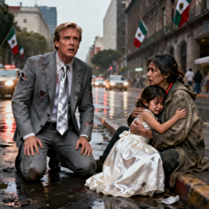 Marcos se llevó todo, pensó por milésima vez, mi dinero, mi reputación, mi dignidad. Y entonces lo vio. El hombre del traje gris estaba parado bajo la lluvia al otro lado de la calle, mirándola directamente. Sus zapatos caros se hundían en los charcos. Su cabello oscuro estaba completamente empapado. Y aún así cruzó la calle y caminó hacia ella como si el temporal no existiera.
