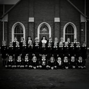 en lo profundo del bosque, un edificio ninguno de ellos reconocieron, uno que no debería haber existió. Los niños estaban de pie en una ordenada fila, rígido con la formalidad del era, caras en blanco, ojos hundidos por el vieja química de la fotografía temprana. pero no fueron los niños quienes los hicieron guardar silencio.