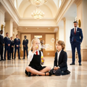 ella respiró hondo. Ella sopló una burbuja, luego dos, luego una corriente de ellos, brillando con arcoíris debajo del vestíbulo candelabro. Las burbujas flotaron el aire, ignorando la tensión, ignorando los hombres que gritaban. Uno aterrizó en el zapato de niño y saltó silenciosamente. el Los gritos se cortaron al instante.