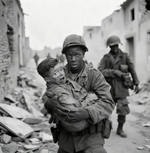 se levantaron y me llevaron a sus médicos. yo Pensé que estaba alucinando. Pensé que había muerto y se había ido a algún lugar que no hacía nada sentido. La variable racial se agravó la disonancia. El adoctrinamiento nazi había categorizó a los soldados no blancos como infrahumano, incapaz de tener piedad o disciplina.