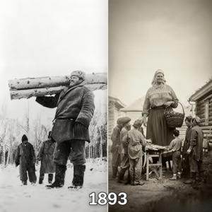 con la misma ropa, los mismos abrigos de invierno, los mismos gorros de piel, las mismas botas pesadas. No eran supervisores, no eran visitantes, no vestían de forma diferente, estaban trabajando. Las fotografías los muestran operando sierras, moviendo troncos, alineados en formaciones de trabajo. No posan, no presumen de su altura, simplemente realizan tareas pesadas en plena jornada laboral como cualquier otro trabajador.