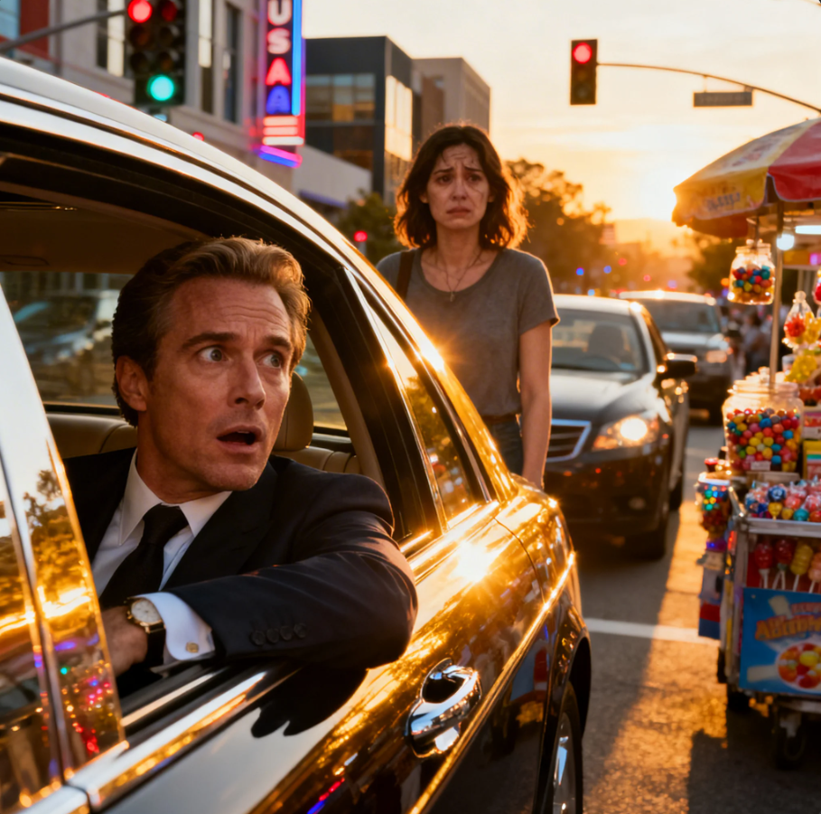 Then something happened that abruptly broke their routine. Between the cars, moving carefully, he saw a woman selling sweets. He walked quickly, approaching the windows, offering in a firm but tired voice. Santiago barely paid attention at first until something caught his eye. It was the way she walked, her posture, something familiar.
