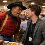 He walks with purpose toward Ransohoff’s table, his boot heels clicking on the tile floor. Ransohoff, still basking in the attention his comments have generated, doesn’t notice Wayne’s approach until the shadow falls across his table. He looks up to see 6’4″ of controlled anger standing over his $50 lunch, prime steak, lobster tail, and all the trimmings that represent his success and status.