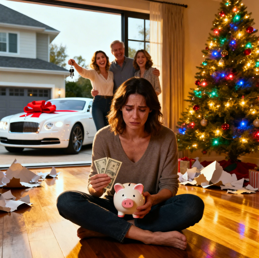 She squeals, bouncing on her toes. My own beamer. Dad beams at her with unfiltered pride. Mom clasping her hands beneath her chin like she’s witnessing a miracle. The car sits in the driveway, a glossy white testament to parental devotion, complete with an enormous red bow that probably cost more than what they spent on my entire Christmas.