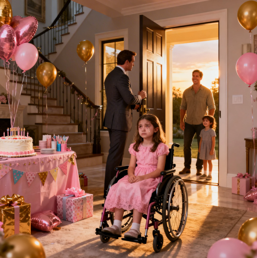 Now they hovered, tethered like everything else in her life. “Maybe they’re just late,” she whispered more to herself than anyone else. Behind her, the clock ticked louder than it should have. 5:47 p.m. The party had started at 5. Her father, Daniel Hart, the man who could command boardrooms, sign million-doll deals before lunch, and have entire teams scrambling with a single email, stood near the doorway, checking his watch for the sixth time in 3 minutes.