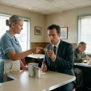 el dejo soltó una risa corta y aguda que sonó más como un ladrido. Lindo, se burló, empujando la tarjeta hacia ella. muy atmosférico. Ahora el café. tengo un patrimonio neto para gestionar. Sarah no retiró la tarjeta. ella no se movió. Ella solo sostuvo su mirada con Esos ojos desconcertantes y llorosos. el ruido ambiental del restaurante, el zumbido de el refrigerador, el zumbido de neón pareció desaparecer, dejando una espesa y silencio sofocante.