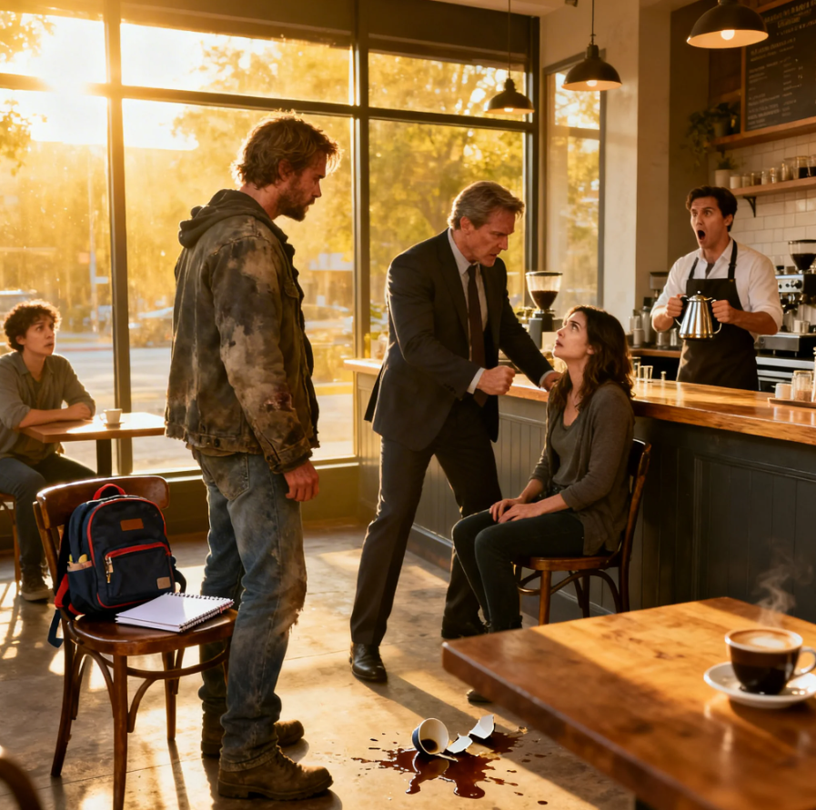 The moment the coffee cup shattered against the floor, time seemed to fracture with it, scattering pieces of silence into something raw, loud, and impossible to ignore. Every head in the small cafe turned at once. But only one man stood up. He didn’t hesitate. Didn’t calculate the risk. Didn’t look around to see if someone else would step in.