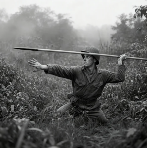 Capitán Raymond Walsh, la compañía comandante, llegó a Hargrove’s posición a las 19.00 horas. Necesito ver esta arma. hargrove Le entregó una de las jabalinas de Riley. Walsh lo examinó. Eje de bambú envuelto Con alambre para agarre. Punta de acero amarrada con más cable balanceado en alguna parte entre el frente y el centro.