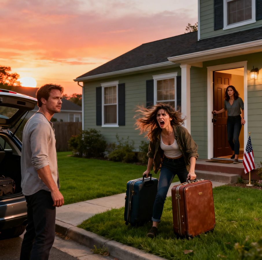 She looked confused, then annoyed, then suspicious as she took in the scene. Laura standing frozen, her bags on the lawn, me already stepping back toward my car. The woman asked who we were. Laura’s face drained of color. She turned toward me slowly like she needed confirmation that this was real.