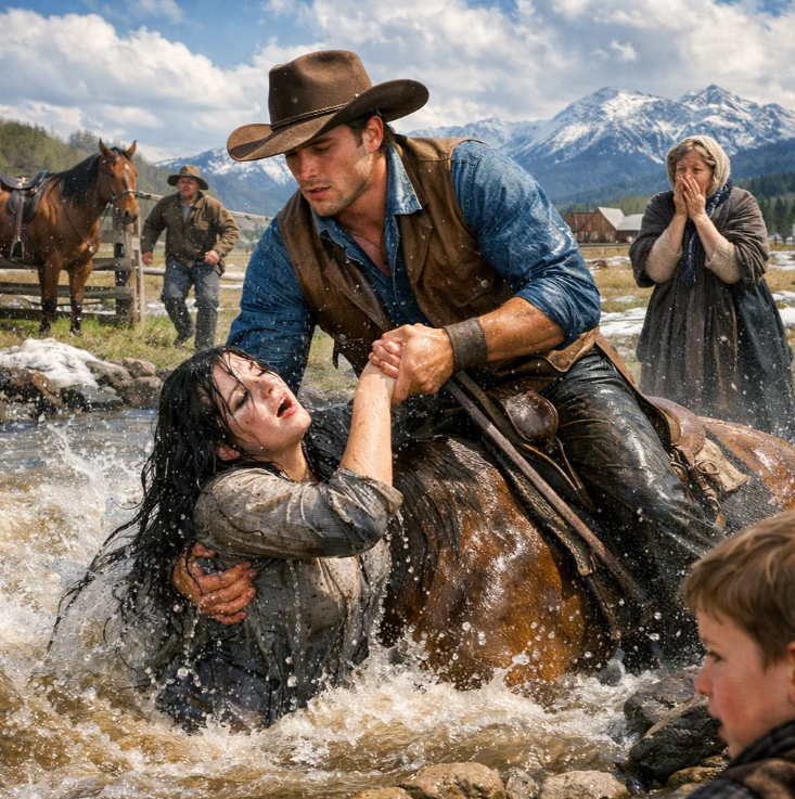 She Was Drowning In The Swollen Creek After Spring Thaw, The Cowboy Rode In And Pulled Her Out !