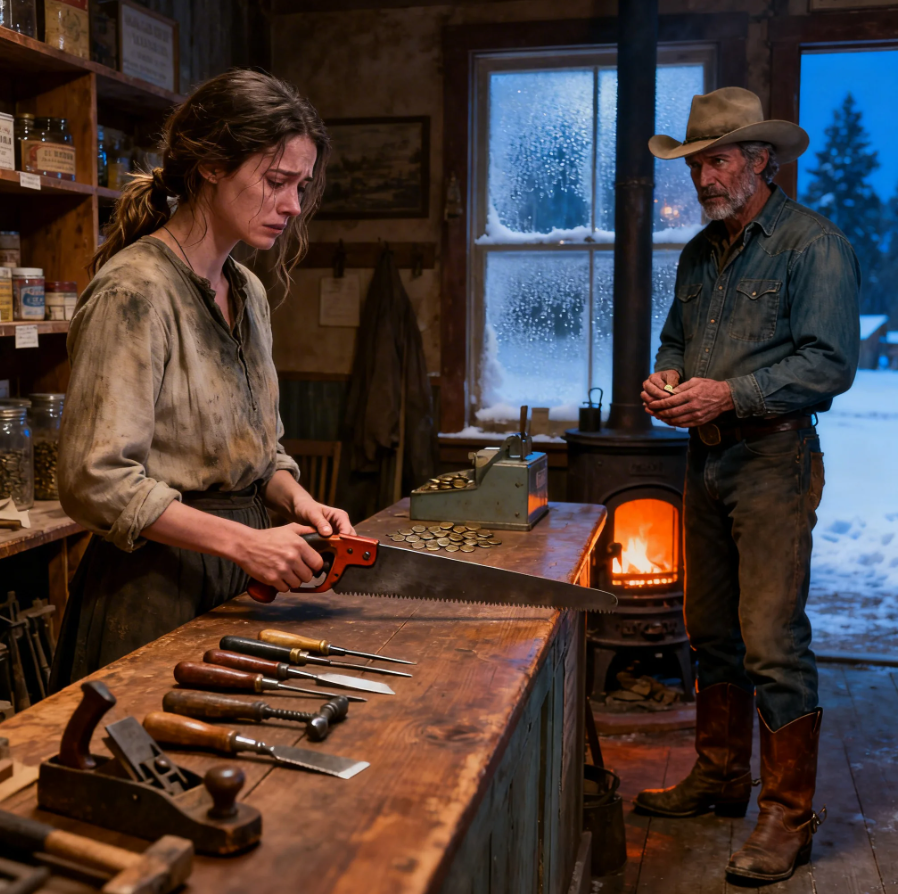 The frost on Morrison’s general store window caught the late afternoon light like shattered glass. Adelaide Harper stood at the counter. Her fingers wrapped around the handle of a carpenter’s saw. And for a moment she couldn’t let go. That’ll be $1, the storekeeper said, already reaching for the coin box. She released it.