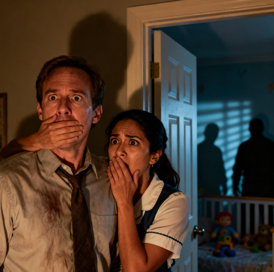 The muffled scream died in Mark’s throat as Elena, his housekeeper of three years, clamped her hand over his mouth and whispered, “Stay silent, please.” Her eyes, usually warm and kind, were wide with terror. Through the crack in the bedroom door, Mark could see shadows moving across his daughter’s bedroom wall.