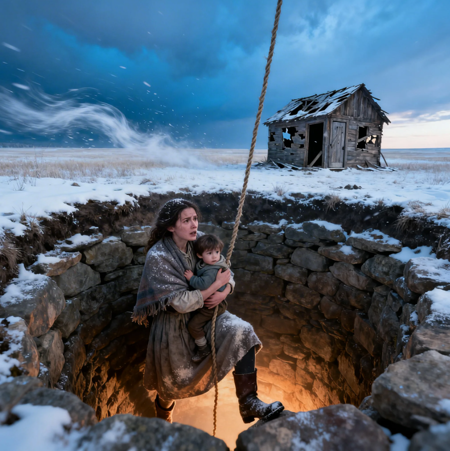 His face was pale, his body thin from the fever, but his eyes were clear. He looked at the wreckage of the shanty, the scattered boards, the destroyed life. “Mama,” he said. “Where are we going to live now?” Anakah looked at the well, the platform below, the stone walls that had held steady at 55° while the world above froze solid.