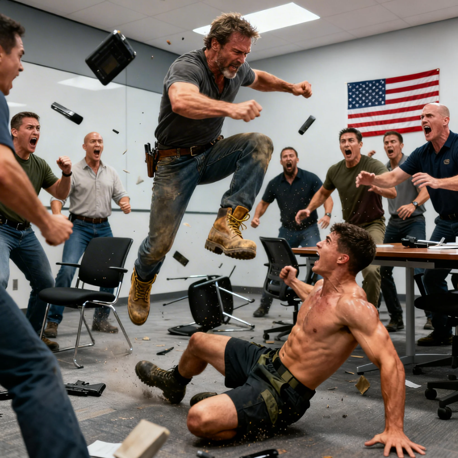 Ryan Callaway hit the mat so hard the entire room stopped breathing. One second he was standing 6’2, 210 lbs of pure muscle. The man every evaluator had already mentally hired. The next second he was flat on his back, staring at the ceiling lights, blinking like he’d forgotten where he was. And the man standing over him, a tiredeyed 38-year-old single father in worn work boots who’d been laughed at when he walked through the door that morning.
