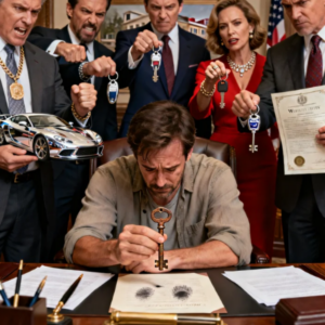 La habitación estaba llena de satisfacción codiciosa. “Y finalmente para Thomas”, dijo el notario. Llegó a en la carpeta y sacó una fina sobre. “Te han dejado el propiedad de un remolque ubicado en una zona rural Texas.” Colocó algunos descoloridos fotografías sobre la mesa, un oxidado, Barco de aspecto solitario en un campo. “Aquí están las claves.