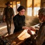 The gold had worn thin where it pressed against her palm during two decades of marriage. It caught the light as she placed it on the counter, and for a moment she couldn’t release it. “I need to sell this,” she said quietly. The assayer, a grizzled man named Thornon, picked up the ring with practiced gentleness. He examined it through his loop, turned it, waited in his palm.