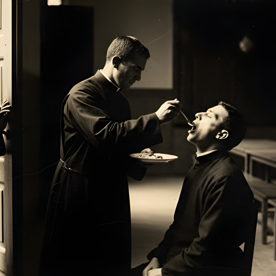 El padre Andrés, un hombre de unos 60 años que llevaba toda su vida sirviendo en el convento, estaba inclinado sobre otra figura. La luz de las velas proyectaba sombras grotescas contra las paredes de piedra, dando un aspecto fantasmal a los dos hombres. Toma, hermano, toma”, susurraba el padre Andrés mientras acercaba una cuchara a los labios del otro sacerdote.