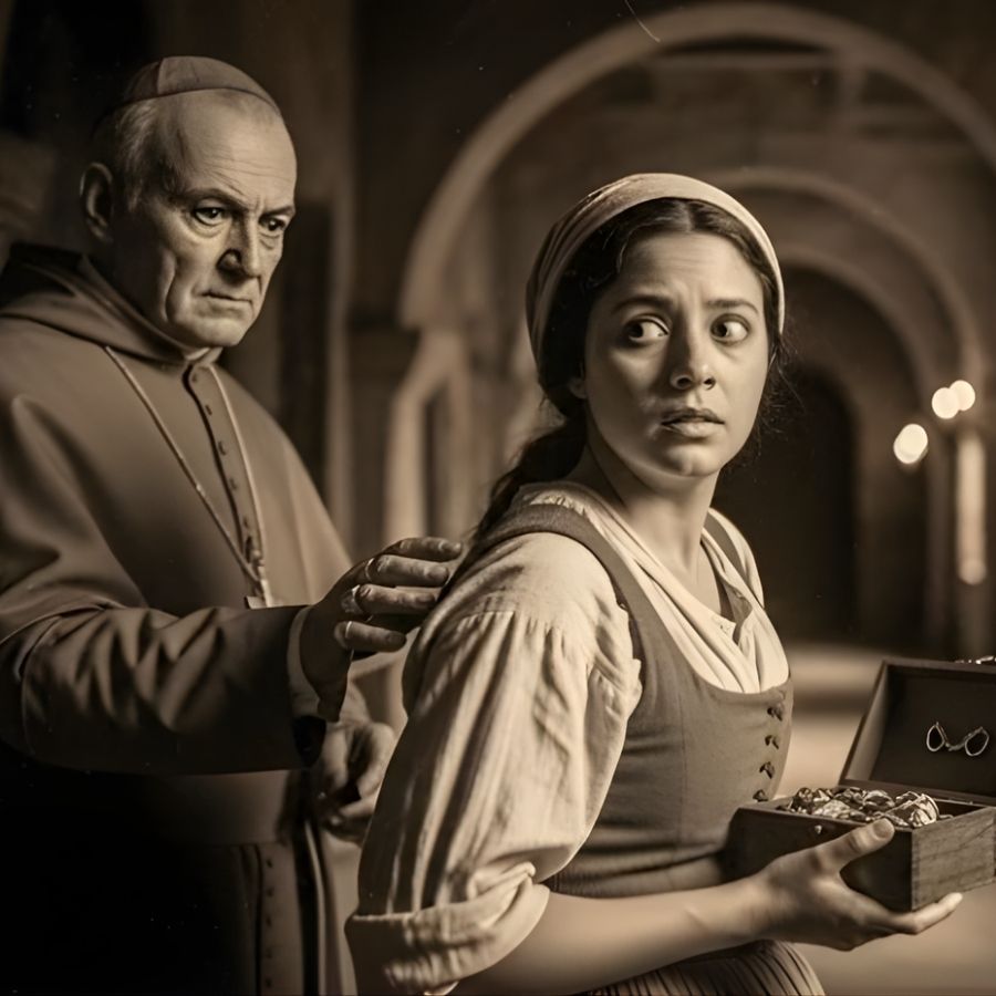 María Dolores miró por la pequeña ventana de su choza hacia la calle. podía ver a don Joaquín y sus hombres dirigiéndose a la vivienda de Tomás, el jardinero del monasterio. Un escalofrío recorrió su espalda. El robo del pectoral del cardenal era un asunto grave que podría tener consecuencias terribles para el responsable.