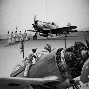 El Prat and Whitney Double Wasp radial prendió en la tercera pala 2000 caballos de fuerza, 417 millas por hora de velocidad máxima. A las 06:48 rodó a posición. A las 07:30 la formación cruzó la costa norte de Boganville. Simpson Harbor yacía 90 millas adelante. Hansen revisó su munición. Seis ametralladoras Browning, calibre 50, 400 balas por arma, 2400 balas en total.