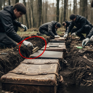 Lo que encontraron allí superó cualquier expectativa. Comenzaron a excavar sistemáticamente en el área circundante a la primera maleta. A medida que removían la tierra cuidadosamente, emergieron más piezas de equipaje. Una maleta gris, otra negra, una mochila deportiva roja, un bolso de mano color café. Todas estaban enterradas en una formación ordenada, espaciadas aproximadamente 1 metro entre sí, formando una línea recta que se extendía por 15 m.