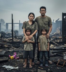 Días después, refugiados en una iglesia improvisada, Josiah murió en silencio. Sus manos estaban ennegrecidas: había intentado salvar lo que pudo de entre las llamas. Sarah no lloró. No entonces. No aún.