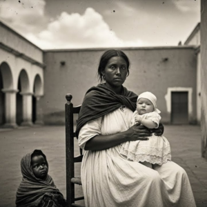 Juana envolvió a la niña en un rebozo viejo y se dirigió hacia la puerta. Pero en ese momento, Beatriz sintió que algo se quebraba en su interior: un cristal rompiéndose con un estruendo que solo ella podía escuchar. Se levantó tambaleante, aún sangrando, y le arrebató a la niña de los brazos. “No,” dijo. Fue la única palabra, pero dicha con una voz que no admitía réplica. Juana argumentó con desesperación sobre la muerte, el castigo, la imposibilidad de esconder a otro bebé. Beatriz no contestó; simplemente se sentó en el petate con la niña pegada al pecho y cerró los ojos. En ese silencio obstinado, Juana comprendió que había perdido. La sangre había llamado a la sangre.