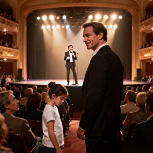 La niña miró al hombre a su lado. Él inclinó la cabeza y asintió con calma. Ella subió al escenario con pasos inseguros. Cuando quedó bajo las luces, el ruido del teatro la envolvió.Álvaro Álvaro se inclinó hacia ella con una sonrisa exagerada. “¿Cómo te llamas?”, preguntó Lucía, respondió apenas audible. “¿Qué?”, dijo él acercándole el micrófono. “Aquí hablamos fuerte.