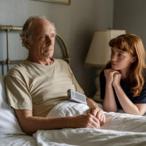 Mi hijo se sentaba junto a la puerta, mirando fijamente el teléfono para evadir la realidad. No soportaba ver mi inmóvil cuerpo ni su propia traición.