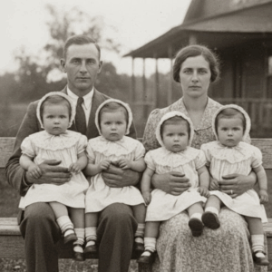 En aquella suave tarde de principios de octubre, un joven fotógrafo llamado Gerald Fenton llegó a la residencia Rowan. Ambrose Rowan había insistido en capturar un momento que, según él, merecía conmemoración. Claraara Rowan, agotada pero temblando con una extraña mezcla de orgullo y aprensión, sostenía a sus cuatro hijas recién nacidas en sus brazos. Las niñas habían nacido solo unas semanas antes, un acontecimiento tan inusual (cuatrillizas idénticas) que incluso médicos de condados vecinos habían viajado para presenciarlo. La gente del pueblo lo describía con asombro silencioso como una bendición, un milagro, una señal de que la providencia había tocado el hogar Rowan.