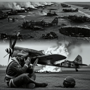 Los pilotos alemanes salieron corriendo de sus barracones en ropa interior, todavía medio dormidos, tratando de comprender que estaba sucediendo. Lo que vieron los paralizó. Sus amados aviones, sus mesergmits y fck wolfs estaban siendo destrozados ante sus ojos. Explosiones secundarias comenzaron cuando los tanques de combustible se incendiaron.