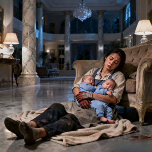 Sobre el suelo del salón, extendidos en una manta delgada, descansaban los gemelos Mendoza, pequeños, frágiles, apenas tres meses de vida. Sus pijamas azul pálido hacían que sus rostros se vieran aún más diminutos. Sus bracitos se agitaban débilmente mientras se quejaban con suavidad. Su madre había fallecido al darles a luz, dejando atrás no solo dos bebés indefensos, sino también un esposo que se enterró en el trabajo en lugar de enfrentar su dolor.