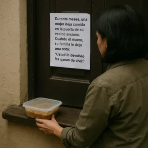 Esa noche no pude dormir pensando en sus ojos vacíos. Al día siguiente, preparé sopa de lentejas con un pan recién horneado. Toqué su puerta. Nada. Dejé el plato en el suelo con una nota: “De su vecina del 3B. Buen provecho”.