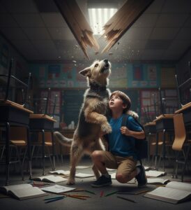 Aquel día, Bantay no estaba afuera. Ken sintió un nudo en el pecho, un presentimiento extraño. Y durante el recreo, ocurrió lo inesperado: el cachorro cruzó la reja oxidada, recorrió el patio y llegó hasta el aula. Ladró fuerte. Una vez. Otra. Nadie entendía nada.