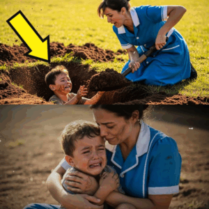 Lucía, con una fuerza sobrehumana nacida de la desesperación, tomó una pala y comenzó a cavar frenéticamente. Rogelio intentó detenerla, pero ella lo derribó. Con un último golpe, la madera cedió y el pequeño Tomás emergió, vivo y llorando, cubierto de barro.