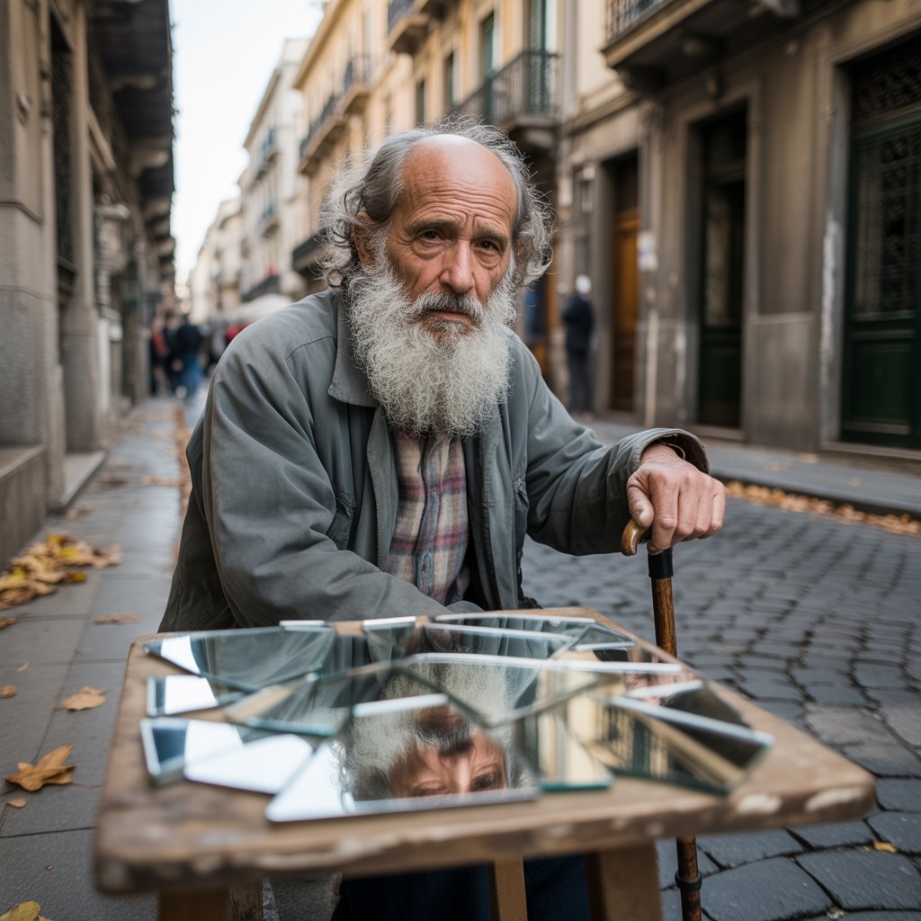 Al principio, la gente pasaba sin entender. Pero poco a poco, el rumor se esparció: que había un hombre que, por muy pocas monedas, te daba un espejo con un mensaje escondido detrás.