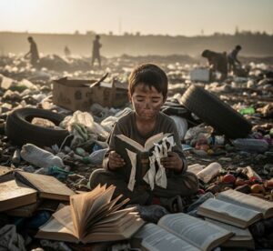 Cada mañana, mientras otros niños corrían al colegio con mochilas coloridas, él caminaba en dirección contraria: hacia el vertedero. Allí buscaba cartón, latas o botellas que su madre pudiera vender para cocinar algo caliente. Pero Tunde tenía una obsesión distinta. No buscaba solo basura. Buscaba libros.
