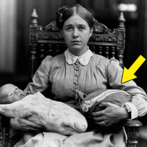 La fotografía, descubierta por la coleccionista Margaret Chen en 2019, muestra a la Sra. Katherine Hartwell —serena, solemne e impecablemente vestida a la moda de la época— sentada en una silla de estudio. En sus brazos, acuna dos bultos. El objeto en su brazo derecho es un bebé envuelto en pañales, probablemente el hijo que falleció trágicamente en febrero de 1906. Pero el objeto en su brazo izquierdo es lo que transforma un simple retrato conmemorativo en un documento terrorífico.