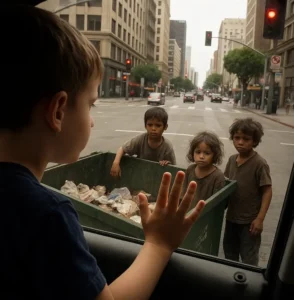 En un semáforo en rojo en el centro de Los Ángeles, mi hijo de cinco años apretó la palma de la mano contra la ventana y susurró: «Papá, esos niños en la basura se parecen mucho a mí».
