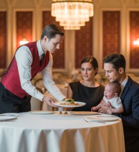 Mercer, en su impecable traje, sudaba. Nada funcionaba: ni los biberones, ni los intentos torpes de su asistente, ni siquiera una pista de Mozart sonando desde un celular. El ambiente comenzaba a enrarecerse, con clientes murmurando que los movieran a la terraza y bromas crueles sobre diversidad y personal. Todo parecía encaminarse a un desastre de relaciones públicas.